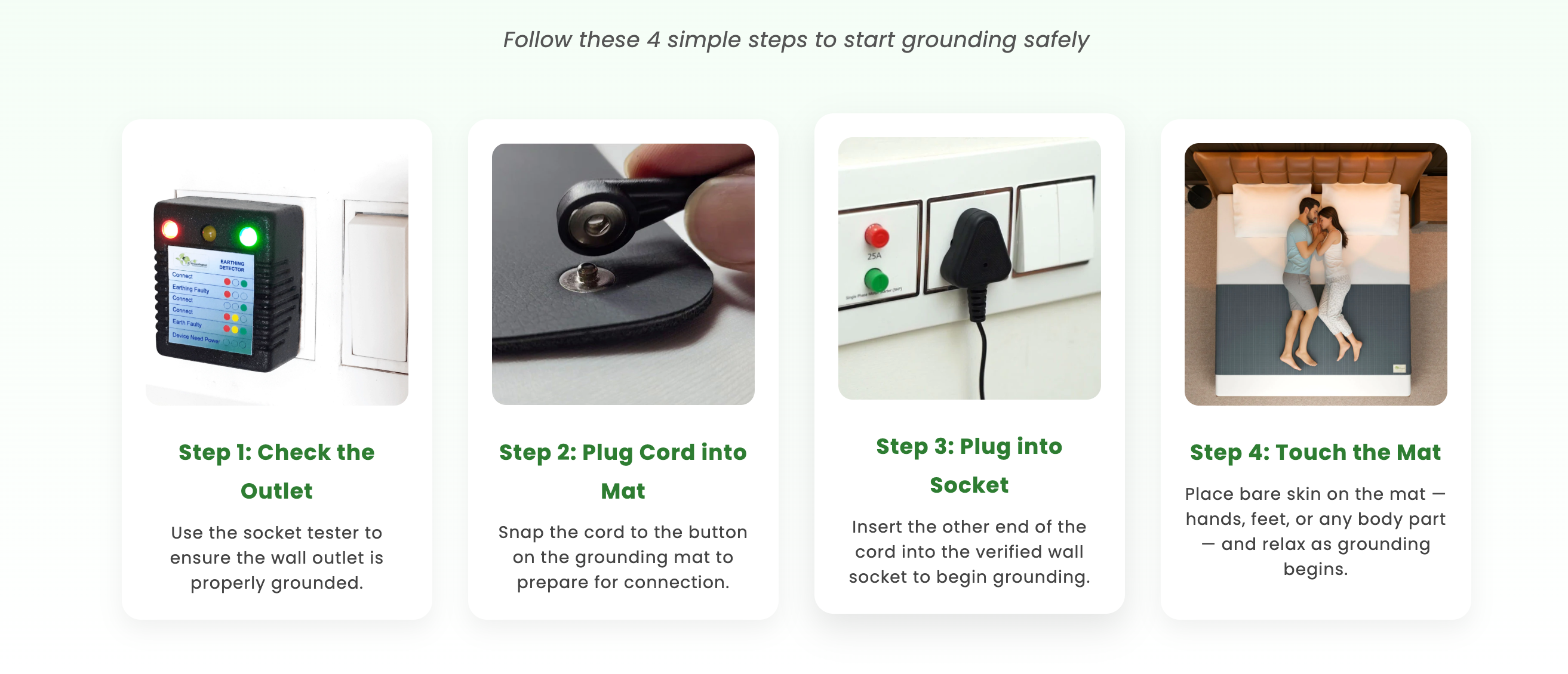 The Grounding Bed Sheet Kit is designed for people who prefer grounding while sleeping. It fits directly onto your bed like a regular fitted sheet and provides a simple, set-and-forget grounding setup for night-time use. The premium bedsheet is soft, breathable, and designed for use as part of a grounding sleep setup.